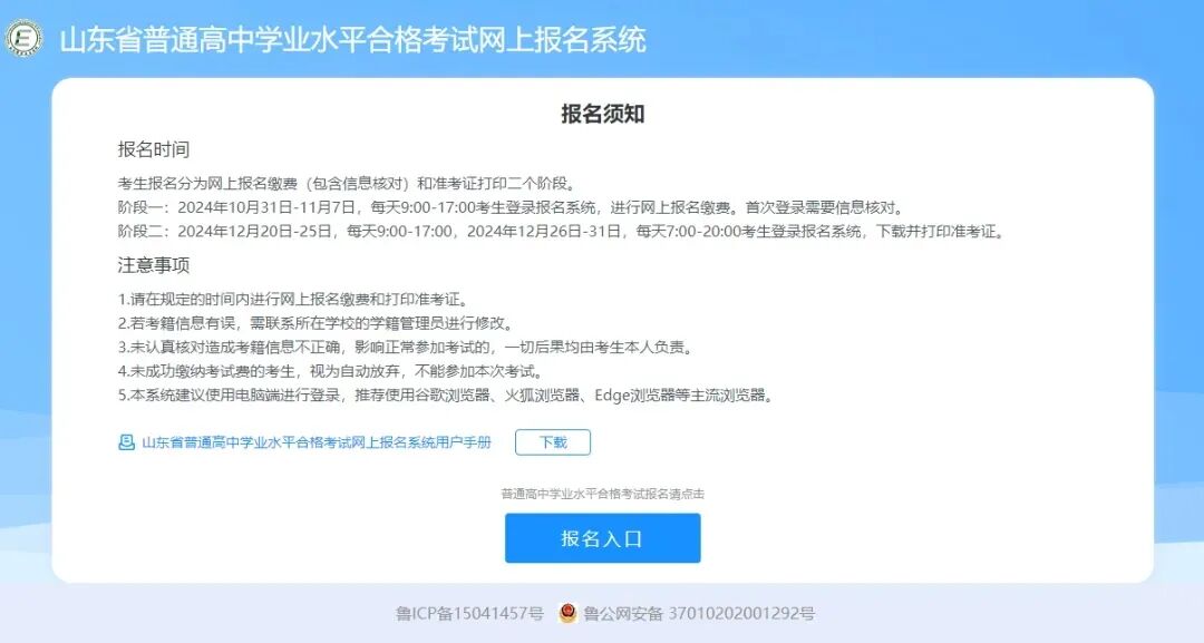 山东省2025年冬季普通高中学业水平合格考试将于 2025年12月27日—31日 进行 。10月 30日起 ,考生可进行报名、 缴费 。