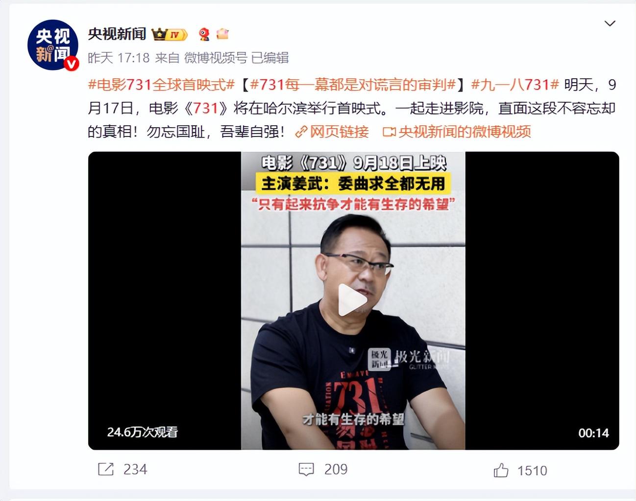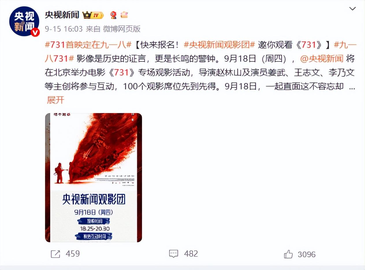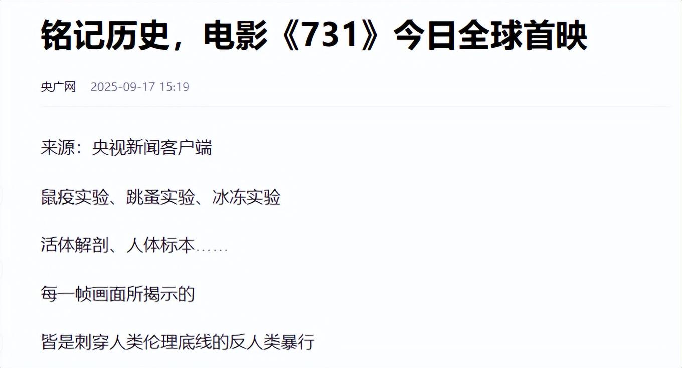 信源来自:央广网 2025-9-17 铭记历史,电影《731》今日全球首映