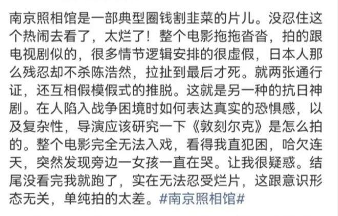 我个人的观点保持不变:《南京照相馆》就是一部需要花钱买票去看的电影而已;大家保持一个平常心去看就行了。